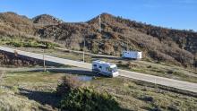 Ab Tirana fahren wir die alte, verlassene SH3 Richtung Elbasan. Die Straße schlängelt sich bis auf knapp 800m hoch und führt über einen Grad immer fast parallel zur erst vor wenigen Jahren fertiggestellten Autobahn. Am Nachmittag finden wir einen Platz in einer geschotterten Ausweichspur an einem windigen Pass.