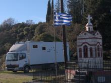 Aber diesmal war den Grenzern an einem Sonntagvormittag wohl ein wenig zu langweilig und so schauten sie neugierig in jede Außenkiste und die Garage vom Lkw ob wir nicht zufällig Drogen oder Waffen dabei hätten. Hatten wir aber nicht und als der griechische Zöllner, der seinen vielleicht zehnjährigen Sohn dabei hatte, unseren Ofen sah und dann noch unsere drei Hunde und die Deko in unseren Frontscheiben, da war es um ihn geschehen und er wünschte uns herzlich eine schöne Zeit in seinem Land.