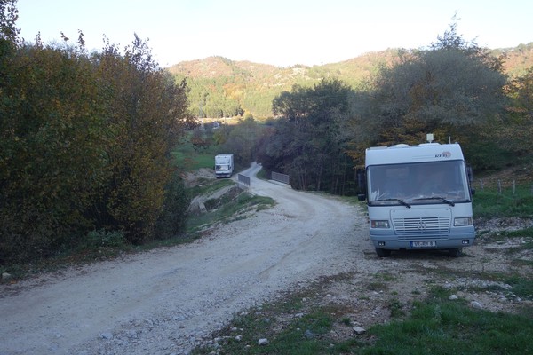 Der bosnische Golf 1+2 , Sharan, T3+4 und die uralten Holzlaster fahren hier natürlich wie auf jedem einigermaßen befahrbaren Weg in ganz Bosnien. Auch drei deutsch-niederländische Geländewagen und drei tschechische Motorcrossräder trafen wir, wahrscheinlich steht die Strecke als aufregende Offroadstraße in irgendeiner App …