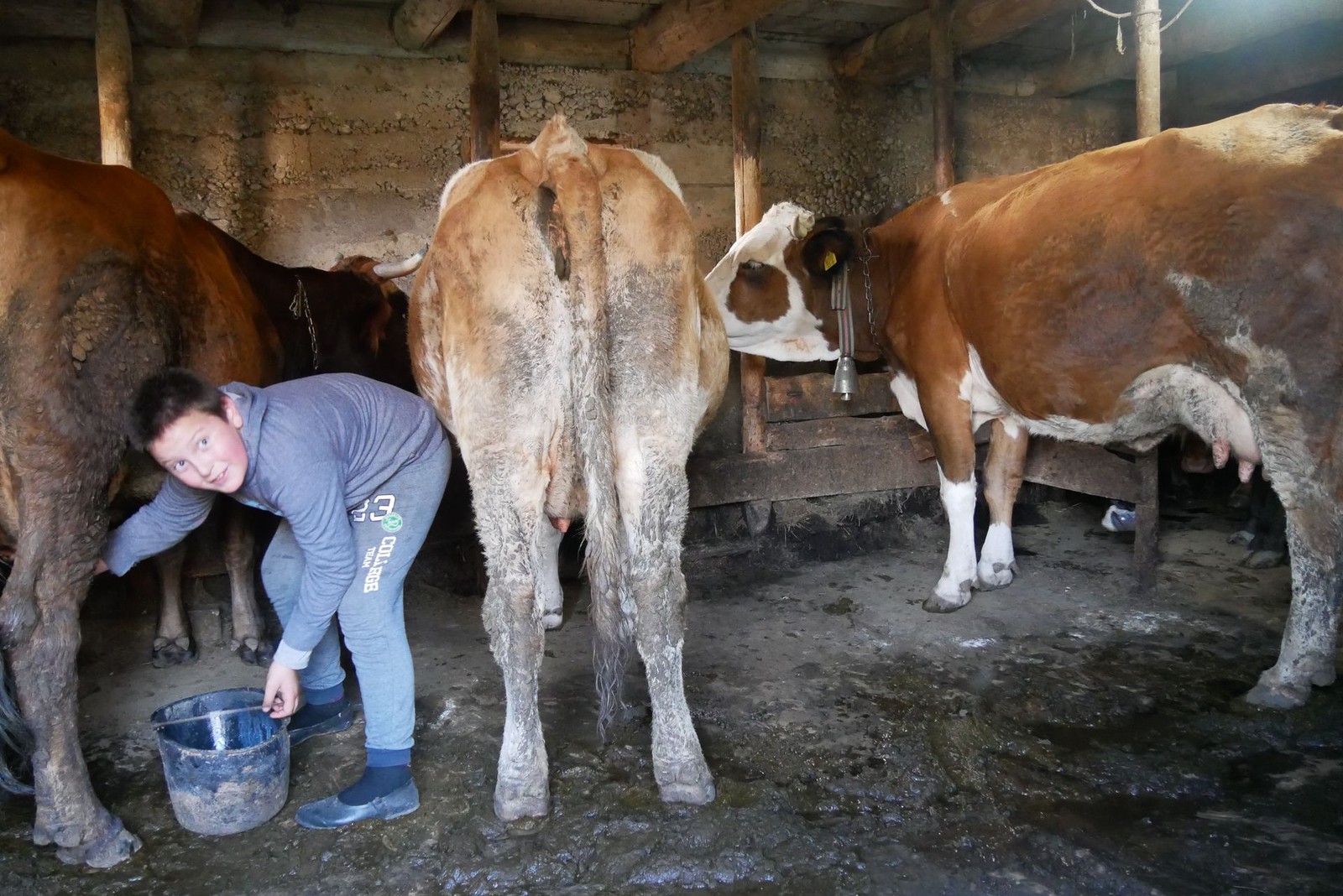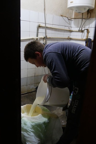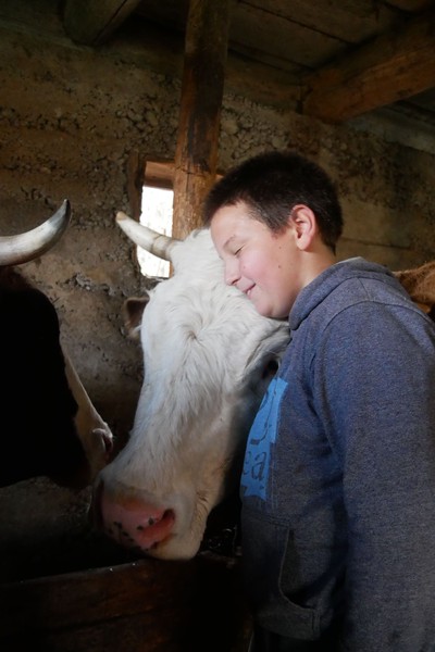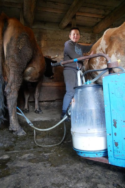 Am nächsten Tag habe ich dann die Ehre Bogdan, der den ganzen Sonntag alleine ist , abends dabei zu helfen die Kühe in den Stall zu treiben (der Bulle war nicht dabei….) und dann beim melken zur Hand zu gehen. Die eineinhalb Liter warme,frische Kuhmilch sind der Lohn und schmecken damit dreifach so gut 🐄