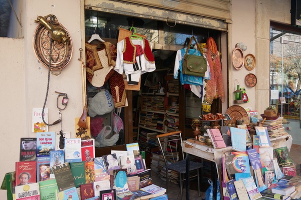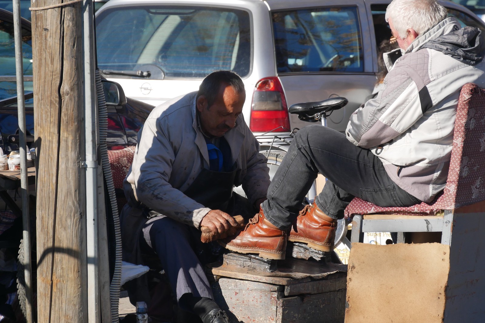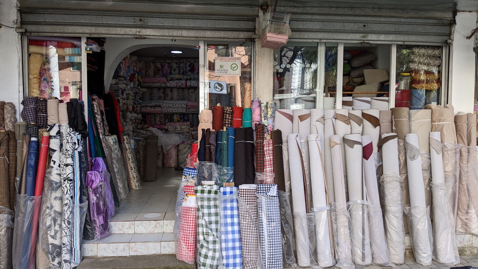 Hier auf dem Balkan sind die Läden bzw Straßen meist themenorientiert, es gibt die Brautmodenstraße, die Optikerstraße, die Bankenstraße, und eben die Stoffe- und Schneiderstraße. Das ist ziemlich praktisch denn so muss man nicht quer hin und her, um Preise etc. zu vergleichen. Allerdings lerne ich gleich im zweiten Laden : “Kleider machen Leute” und so will mich die sehr schicke Verkäuferin in ihrem sehr schicken Laden eigentlich als Kundin nicht bedienen, denn ich sehe aus wie gerade vom Berg (Wanderrschube, Wanderhose und Fleece mit Mütze). Das passt wohl nicht in ihren schicken Gardinenladen und da sie eh keinen brauchbaren Stoff hat gehe ich auch wieder 😉 Der draußen wartende Freund wurde inzwischen aber schon vom nächsten Ladenbesitzer angequatscht und nachdem klar war, was wir suchen, führte er uns zum richtigen Laden. Die Verständigung ging über aufmalen, italienische Wortfetzen, Hand und Fuß. Theoretisch war der Laden richtig, aber leider war mir/uns nach ausführlicher Besichtigung und Befühlung der infrage kommenden Polsterstoffe schnell klar: das wird optisch unserer Sofaecke nicht unbedingt aufwerten. Es war eine Art Imitat von Leder aus Kunststoff oder Velour in diversen Farben der sofort jeden Krümel und jedes Hundehaar sichtbar präsentieren würde. Ich hatte da eher an robusten Leinenstoff gedacht.