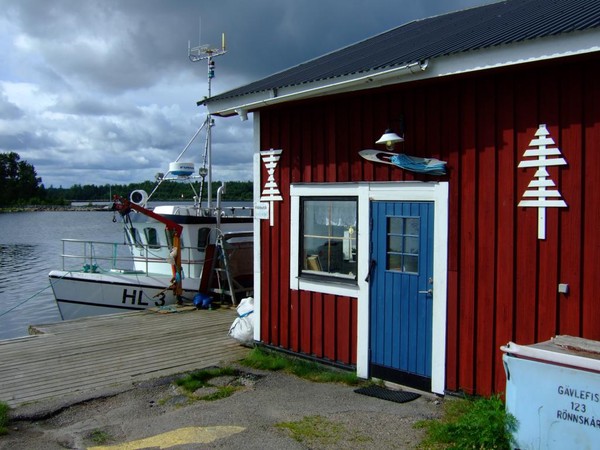 Weiter nördlich fahre ich die nur mit einem künstlichen Straßenwall verbundene Miniinsel Rönnskär an. Auf dem Inselchen gibt es ganz leckeren, preisgünstigen Fisch beim ansässigen Fischer in der Fischbutik. Das kleine Lädchen ist immer geöffnet, da auf Vertrauensbasis bezahlt wird. Man nimmt sich einfach die portionsweise verpackten, geräucherten oder frischen Fische aus den Kühlschränken, rechnet zusammen und legt das Geld auf den Tisch. Super Idee, funktioniert so aber wahrscheinlich nur in Schweden. Selbst eingelegten Surströmming gibt es auch, ich habe mich aber nicht getraut, das Experiment bei den Riesenpackungen durchzuführen.
