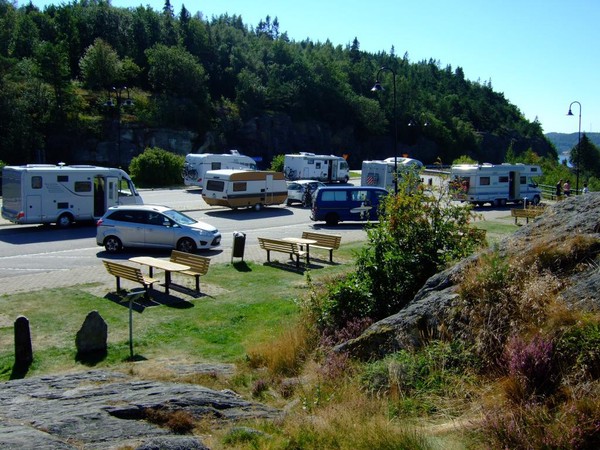 Eine endlose Autoschlange windet sich mir entgegen. Die teilweise vom Straßenzustand an griechische Verhältnisse erinnernde E45 Richtung Göteborg ist komplett ausgelastet. Die Caravankarawane hin und wieder unterbrochen von einem gefährlich rechts und links schaukelnden 60t schwedischen Road Train. Mit mir fährt eine ebensolche Kolonne gen Süden. Nun, denke ich, verlasse einfach mal die eingefahrenen Wege und schnurstracks gehts gen West direkt in Schwedens Schärengarten, wenigstens mal schauen. Und da, den Gedanken hatten andere auch und nach wenigen Kilometern ohne jegliche Anhaltemöglichkeit entdecke ich, meine zahlreichen Mitfahrer den bis jetzt einzigen Aussichtsparkplatz auf der Insel Orust blockierend, in Reih und Glied stehen. Einige haben sich anscheinend dort in dem ohrenbetäubenden Straßenlärm für mehrere Tage eingerichtet.