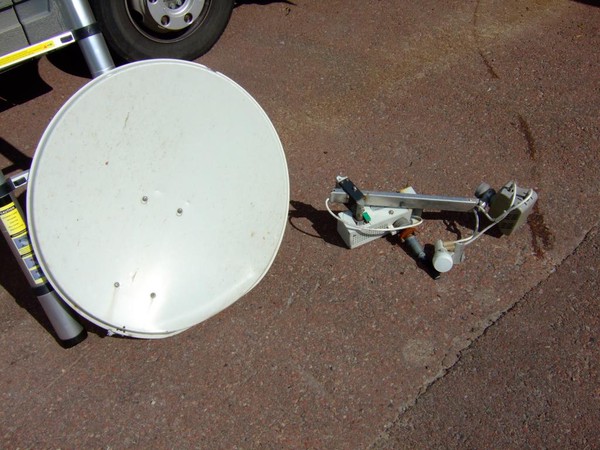 Diesel wird knapp in dieser einsamen Gegend. Volltanken an den meist nur vorhandenen Tankautomaten klappt nicht, da per Kreditkarte immer nur ein Teilbetrag in unterschiedlicher Höhe getankt werden kann. Mal sind es 500 mal 800 Kronen, je nach Unternehmen. Eine etwas größere Häuseransammlung kündigt sich an, Pizzeria, ICA Laden, viele Loppis und eine Tankstelle. Schwungvoll fahre ich an die Säule, jedenfalls hatte ich das vor, aber ein lautes Kreischen und Scheppern lässt mich die Bremse voll durchtreten, Passanten springen wild gestikulierend, nach oben zeigend zur Seite. Da ahne ich es schon, im Rückspiegel sehe ich meine Satellitenantenne, oder das was von ihr übrig ist, auf der Straße liegen. Der Rest mit Internet LNB und Gestänge baumelt munter am Kabel zwischen Fahrerhaus und Aufbau. Ohne weitere Schäden zu verursachen, kann ich zurückfahren und die Reste abbauen. Das Wichtigste, der Schornstein steht noch und hat nichts abbekommen.