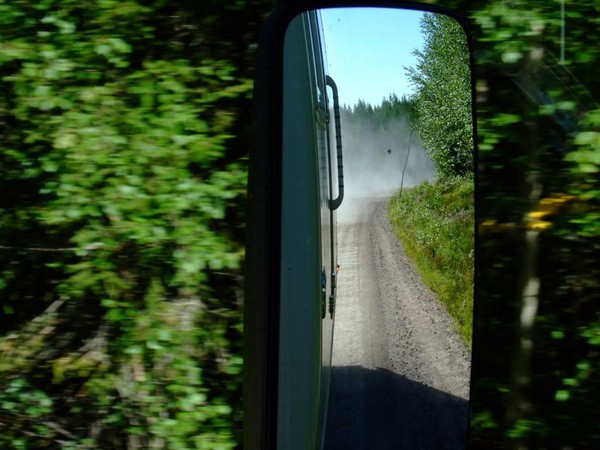 Weiter geht`s die unendlichen Schotterpisten, manche so schmal, dass Mercedes denkt, sie hat mal wieder zugenommen. Grenzwertig ist das Maß der Last, das sie zu tragen hat schon immer. Die Polen haben ihre Moltebeeren Verarbeitungsstrecke ein paar Kilometer weiter südlich aufgebaut, winken und verschwinden im alles bedeckenden Grau des Staubes.
