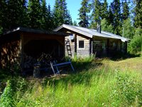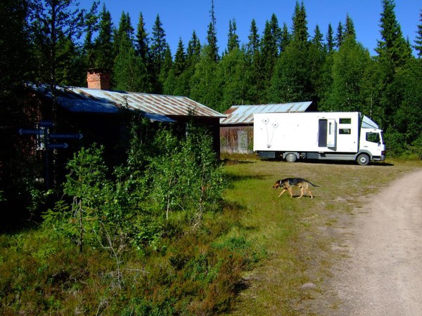 Die Piste staubt und irgendwann ist auch die zu Ende. Die norwegische Grenze ist jetzt genau noch einen Kilometer entfernt. Eine vor Jahren verlassene Rangerstation mit vorgelagerter Sonnenwiese lädt mich zum Verweilen ein. In dem farblosen Holzhaus ist noch alles so, als hätte gestern hier noch jemand seinen Dienst getan. Das Bakelittelefon steht auf dem Tisch, umrahmt von Stapeln alter Telefonbücher und nebenan in der Küche wartet der Wasserkessel auf dem Holzherd auf ein zünftiges Feuer.