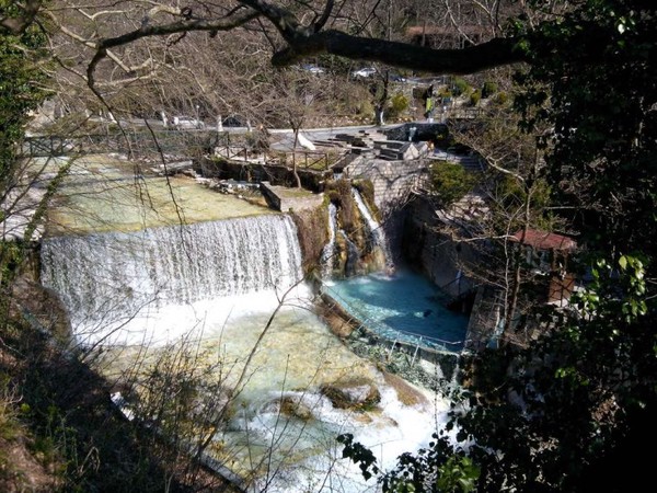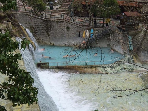 Soweit zur Information allgemein. Der Ort ist anscheinend ein beliebter touristisch erschlossener Wallfahrtsort. Selbst zu dieser Jahreszeit sind schon einige Gäste zu Besuch, wenn auch überschaubar. Im Eingangsbereich des Ortes werden regionale Produkte und „Greek Souvenirs“ an die besser Verdienenden feil geboten. Baden kann man im Schwimmbad, in einem natürlichen Badebecken oder in einzelnen Badekabinen. Das Wasser ist nach meiner Meinung höchstens 35 Grad warm, gemessen habe ich nicht. Vielleicht liegt es auch an den einstelligen Außentemperaturen.