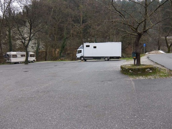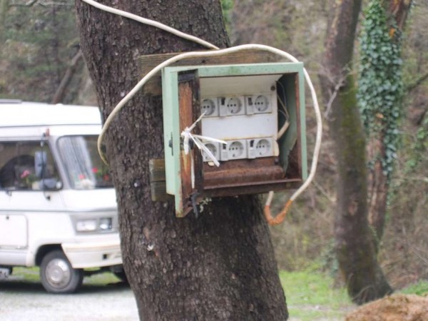 Der für Wohnmobile und anderweitig in mobilen Behausungen Wohnenden ist ein Platz oberhalb des Ortes reserviert, allerdings müsse eine Gebühr an der Rezeption des Bades entrichtet werden. Diese Abgabe belaufe sich auf 10,00 EUR incl. Strom. Das wäre unter Umständen noch zu verkraften, zumal der höher liegende Platz schon etwas attraktiver als der Asphaltplatz ist.