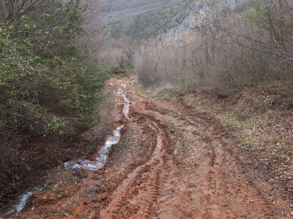 Der Regen und die Kälte sind zuverlässige Begleiter, auch hier an den Thermalquellen von Pozar. Es nieselt leicht, die Temperatur hält sich wacker im einstelligen Bereich. Also so richtiges im Wagen sitzen, dem Feuer zuschauen und der Dinge harren, die da kommen Wetter. Der Hund nervt und Recht hat er, also los geht es, zumindest eine kleine Wanderung in die Berge der südlichen Ausläufer der Kaimakzalan. Es gibt kein schlechtes Wetter, nur schlechte Kleidung. Nach nur wenigen einhundert Metern stehe ich vor einer knietiefen unendlichen Pfütze. Aufgeben gibt es nicht und ich schlage mich durchs Unterholz. Der Hund schaut auch etwas verdutzt. Die Wege sind schlammig, ich versinke bis zum Knöchel, aber immer offenes fließendes Wasser aus allen Richtungen reinigt die Schuhe außen und innen. Trotz allem ist es eine herrliche Landschaft und einige Sekunden erhasche ich einen Blick auf die gigantischen schneebedeckten Bergen im Norden.