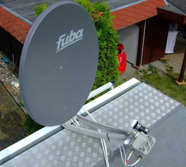 Bis vor ein paar Tagen benutzte ich zum Empfang eine ältere halbautomatische Antenne. D.h. die Antenne musste grob nach Süd-Ost ausgerichtet werden und anschließend wurde der Satellit (früher Hellas, heute Astra) per einer Dreambox 500 automatisch angesteuert. Das war relativ bequem, allerdings gab es des öfteren mal einen Systemcrash und die Steuerungssoftware musste per Support neu installiert werden. Ein weiterer entscheidender Nachteil war die Windanfälligkeit der Anlage, schon bei 3-4 m/s schwankte und wackelte die Schüssel, dass ein Empfang unmöglich war.