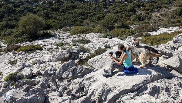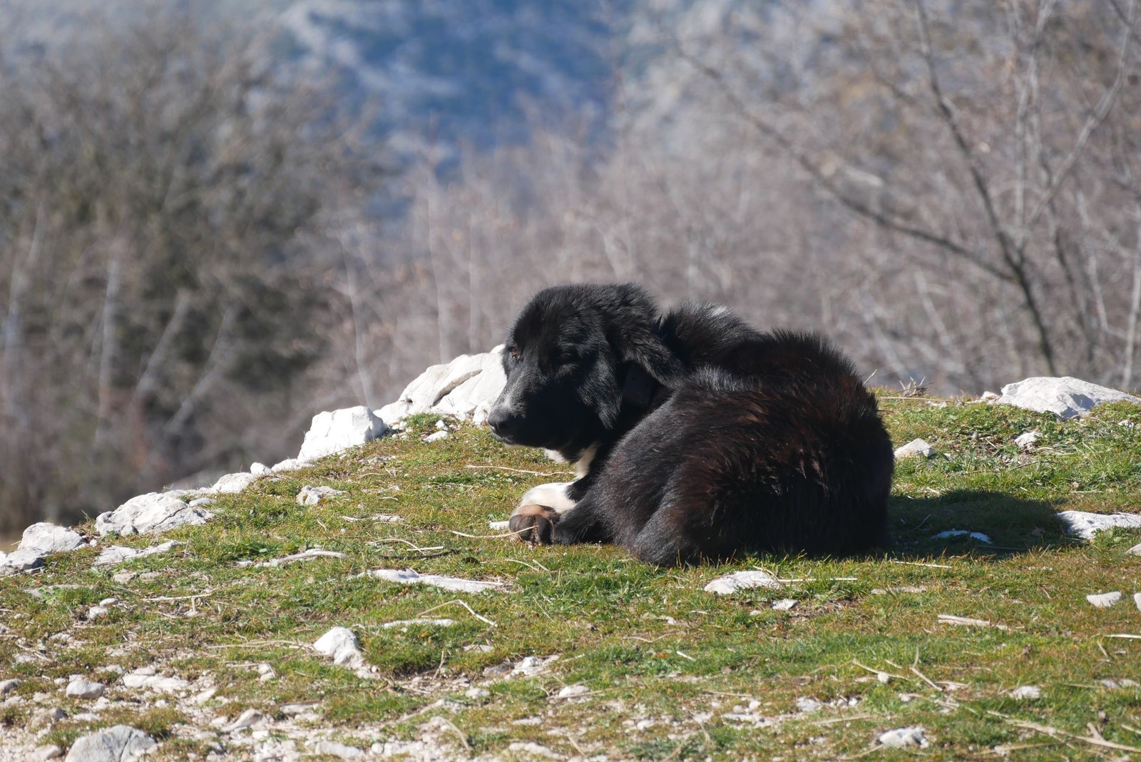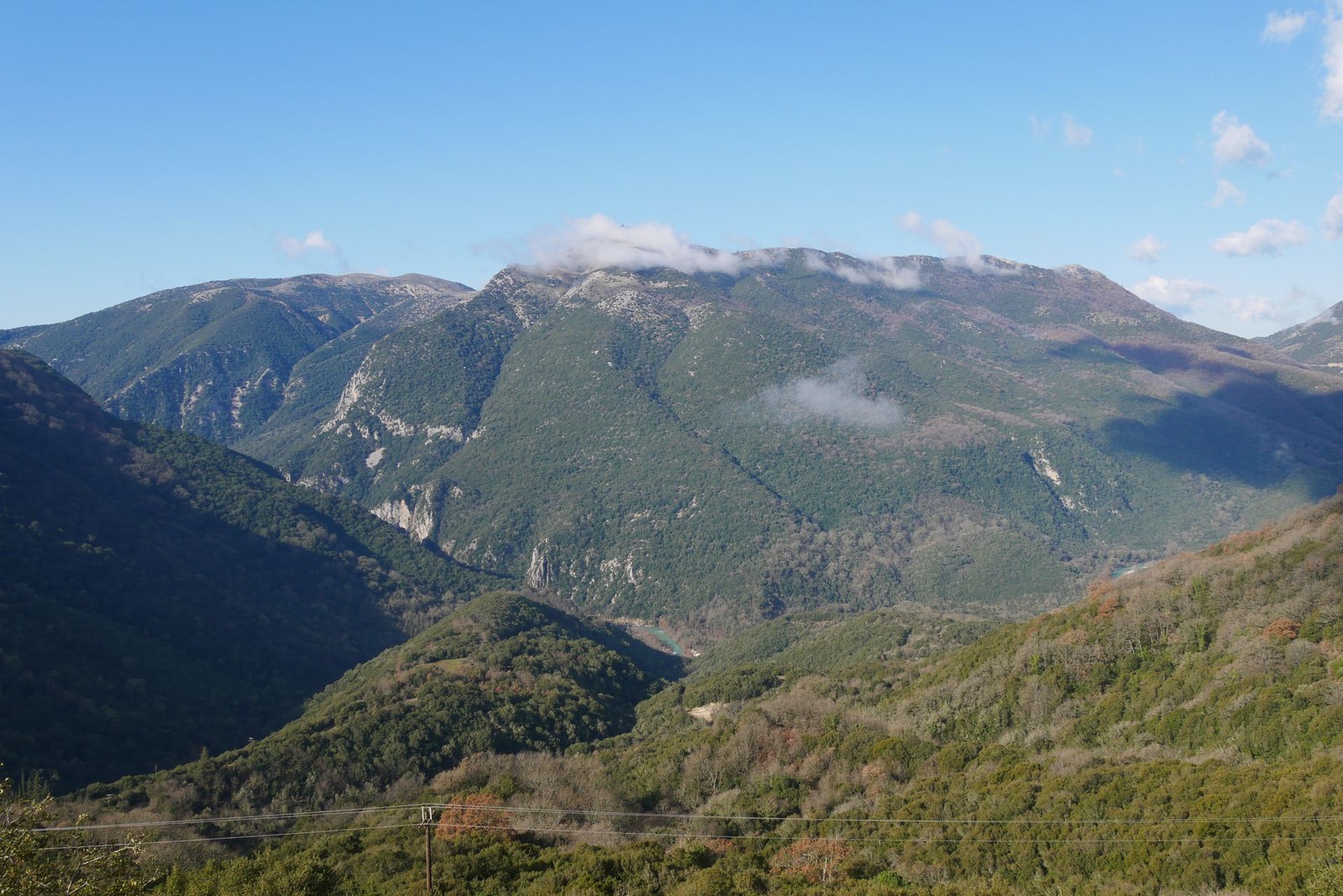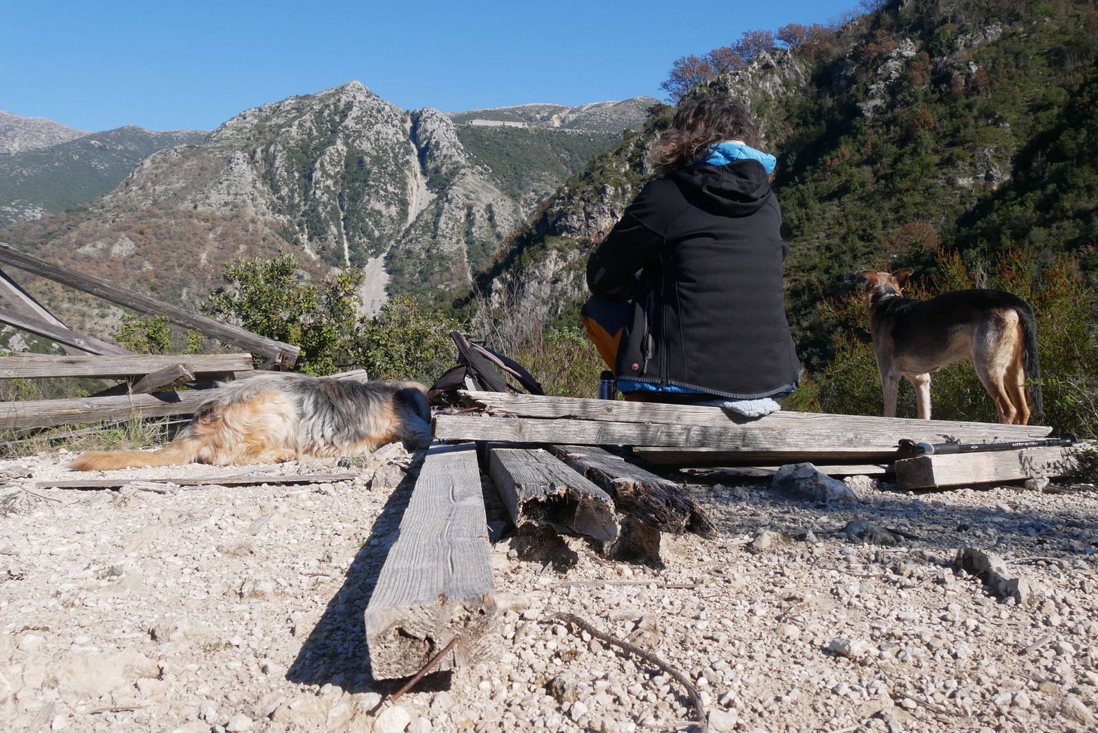 Wir haben ja tatsächlich, wenn wir in ein neues Land kommen, eher Ideen wohin es gehen könnte als genaue Routen im Kopf. So schauen wir auch diesmal in unsere Karten (OsmAnd und ein alter Atlas) und da wir mal wieder Hundefutter brauchen fahren wir über Ioannina und dann die Nr.6 entlang. Diese entpuppt sich als Hauptgewinn, schlängelt sich lange parallel des Flusses Kalamas, ist kaum befahren da es jetzt eine neue Autobahn gibt, und lässt uns in viele wilde Schluchten schauen. Schnell ist uns klar, dass wir uns das Gebiet um den Epirus noch einmal zu einer für uns besseren Jahreszeit ganz langsam und in Ruhe anschauen müssen. Gefühlt könnten wir hier alle paar Kilometer in eine neue kleine Bergstraße abbiegen und würden uns auf Jahre nicht langweilen. Nur die freilaufenden Herdenhunde machen uns bzw. unseren Hunden zu schaffen. Ihr Job ist es ja ohne Hirte auf eine Herde aufzupassen, oft Kühe oder Ziegen oder Schafe. Und wenn diese Hunde nun unsere Hunde sehen dann starten sie meist einen Angriff. Das ist wenig lustig, aber zum Glück waren wir jedesmal dicht am Auto und konnten unsere drei Felle schnell hineinschicken. Zu uns Menschen sind diese Herdenhunde meist sehr freundlich und eher scheu.