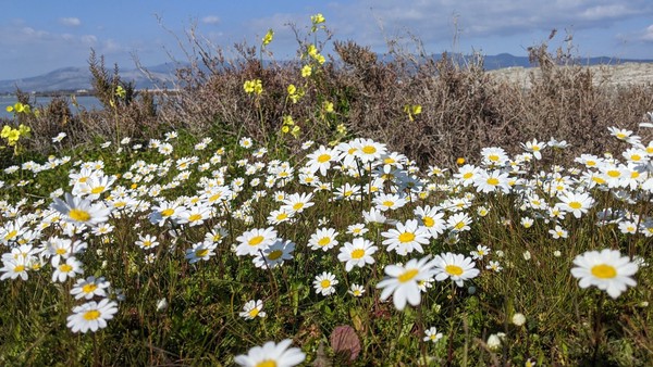 Und plötzlich im Februar kommt der Winter mit großen Schritten auch nach Griechenland. Sogar in Athen liegt soviel Schnee das dort erstmal gar nichts mehr geht. Zum Glück sind wir ja a) darauf vorbereitet, denn auch im Süden und gerade da wo es hohe Berge gibt ist es im Winter nicht nur sonnig und b) sind wir ja weit weg von Athen. Wir haben einen wunderschönen Platz wieder direkt an einem türkis leuchtendem Fluss, diesmal ist es der Archeron und an dieser Stelle bei Glyki kommen direkt aus einer steilen Felswand Quellen in den Archeron. Und man kann auch prima parallel zum Fluss mit Blick in die Berge wandern soweit man möchte. Wir haben unterwegs nur eine kleine, frühe Eidechse getroffen und waren ansonsten alleine unterwegs. Und da es hier auch ganz viele schon lange nicht mehr beerntete Oliven- und Zitronenbäume gibt ziehen wir am nächsten Tag los und ernten ungefähr 5 Kilo beste, große Oliven die wir einritzen und in Wasser legen. Wer denkt, Oliven selber einlegen sei kompliziert der kann gerne hier mal nachlesen, es ist wirklich sehr simpel und das Ergebnis so lecker.
