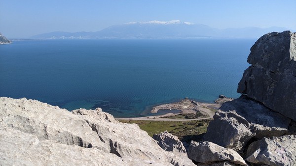 Der Schnee bleibt uns zwar fern, wir sehen ihn aber auf fast allen Berggipfeln und von dort erreicht uns auch der eisig kalte, starke Wind. Die Temperaturen liegen bei 5 bis 8 Grad, aber gefühlt im Minusbereich. Ich bin saufroh über meine dicke Daunenjacke und die warme Mütze, alles noch Überbleibsel aus meinen früheren Skisaisons in der Schweiz, Frankreich und Österreich. Und auch wenn ich sie nur alle Jahre einmal kurz brauche werden sie weiter mit mir reisen. Denn wenn Minimalismus frieren bedeutet bin ich dagegen. 😉 So stehen wir mit der Lkw-Nase im Wind an einem einsamen Strand mit Blick auf Lefkada. Hier ist es ja sowieso immer windig, ist es doch ein sehr beliebtes Kitesurfgebiet. Bekannt ist der Strand hier auch wegen seinen großen Wasserschildkröten, aber die lassen sich jetzt leider nicht blicken. So trotzen wir gut eingepackt und eingeparkt den eisigen Winden, essen Schokoladenkuchen (der Zitronenkuchen hielt nicht lange) nach unseren Strandwanderungen und planen die weiteren Wege. Richtung Patras ist klar, aber da gibt es noch so vieles davor zu entdecken. …