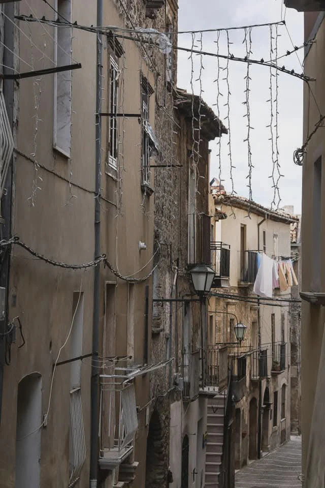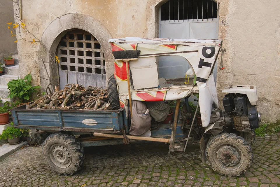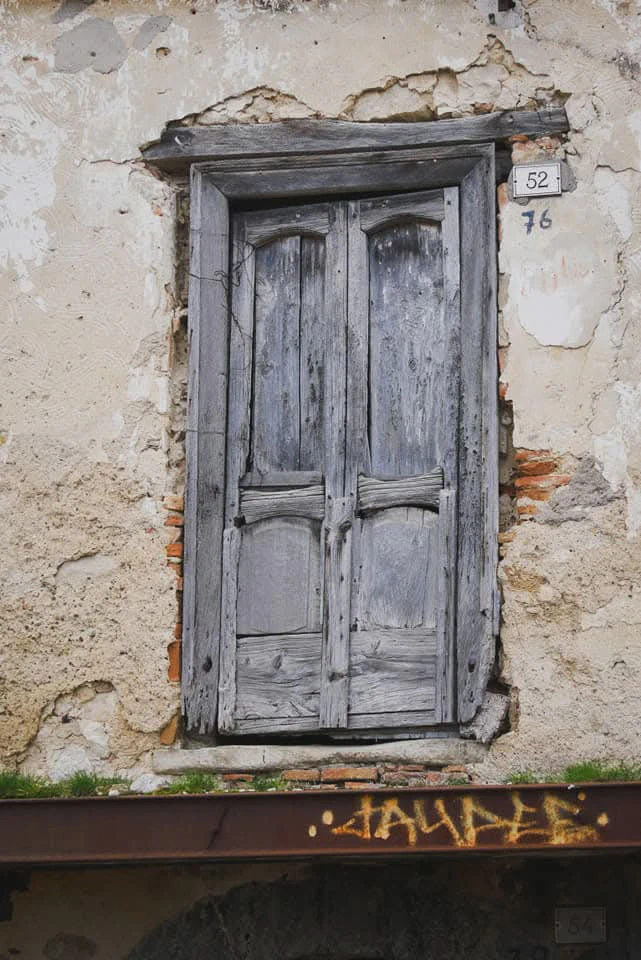 Gestern wurde ich spontan in ein Haus eingeladen in dem gerade renoviert wurde um vom Balkon aus ein besseres Foto von der uralten lateinischen Inschrift am Nachbarhaus zu machen. Heute führte mich die Frau Fleischerin stolz aus dem Laden in den Regen hinaus um mir ihre Olivenbäume zu zeigen aus denen sie ein wirklich unglaublich leckeres Öl produziert, natürlich Bio. Und das alles ohne das wir uns eigentlich verständigen können, da mein italienisch kaum fünf Worte beinhaltet….aber Verstehen geht ja über die Sprache hinaus. Und so schlendere ich durch all diese Dörfer mit ihren Geschichten und was ich persönlich ja so schön romantisch finde, nämlich das Leere und den langsamen Verfall, hat eigentlich traurige Gründe . Es gibt kaum Arbeit und wer möchte heute denn noch Holz schleppen um es warm zu haben….?