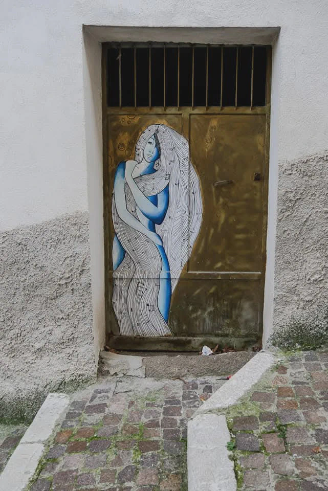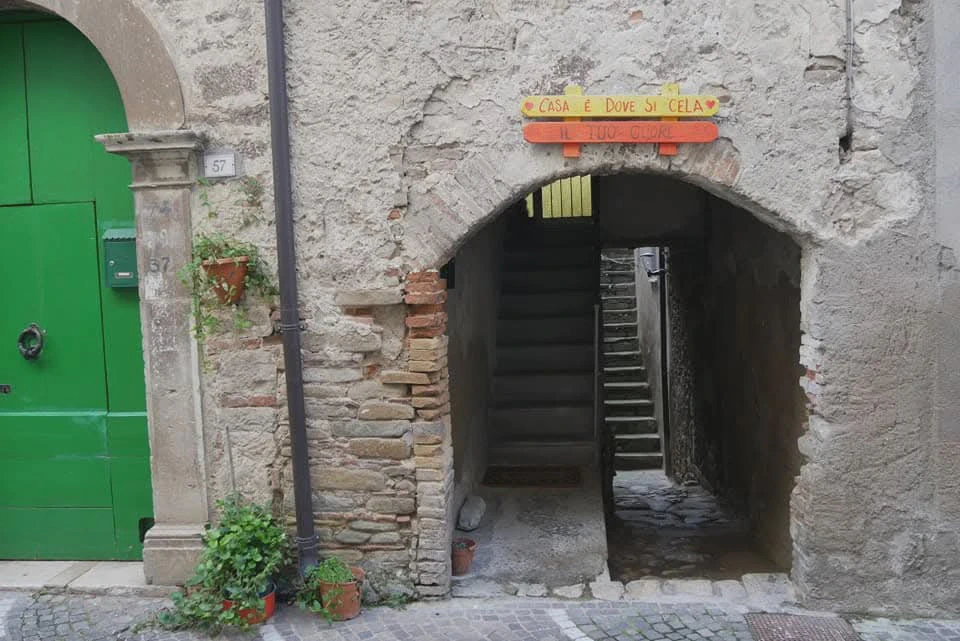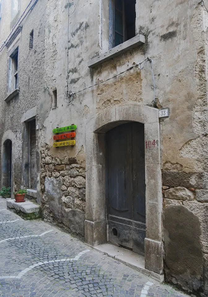Jedenfalls sind diese Menschen hier auf den Dörfern ganz besonders herzlich und sie lieben ihr Land, ihre Heimat. Das zeigt sich an vielen kleinen Dingen. Hier in Gambatesa in Molise zum Beispiel an der Liebe zum Detail : Blumen wachsen aus alten Schuhen, nachdenklich machende Sprüche säumen die Gassen auf bunten Holzbrettern und viele Türen sind kunstvoll bemalt. Ein Ort der eigentlich viel mehr Aufmerksamkeit verdient hätte….genau wie die Menschen hier.
